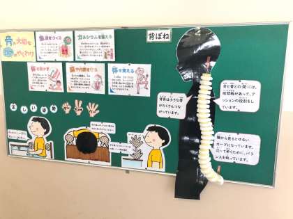 今回は骨の特集です。作品展にご来校の折には、ぜひ保健室にもお立ち寄りください。