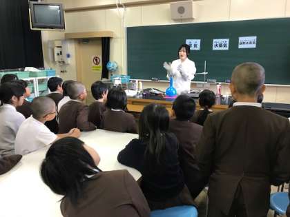 3時間目の理科の学習時間に、大阪市立科学館の学芸員の方々に出張サイエンスショーをしていただきました。
