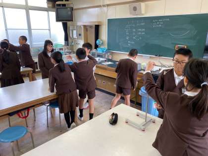 ブランコの経験を活かし、ふりこを使って音楽のリズムに合うようにふりこを揺らすチャレンジを班で協力して行いました。