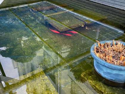 そのためか、普段は姿をあまり見せないコイが気持ちよさそうに泳いでいました。