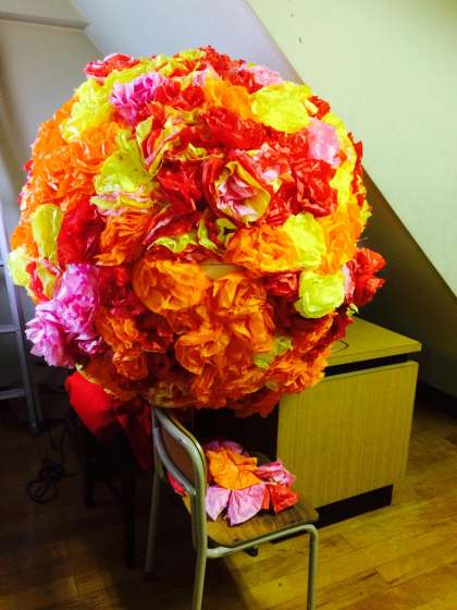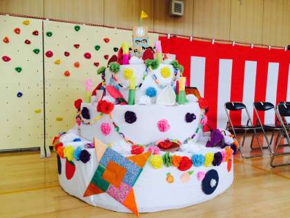 ※集会当日は携帯で写真がとれませんでしたので、終わったあとの「巻物」や「くす玉」の写真を載せています。