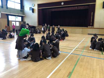 今日の児童集会は30分間延長のスペシャルバージョンです。