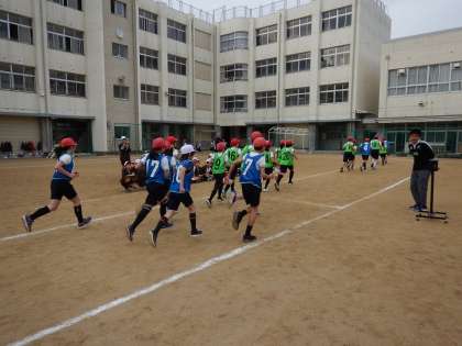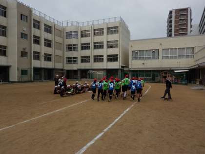 高学年は15周走ります。