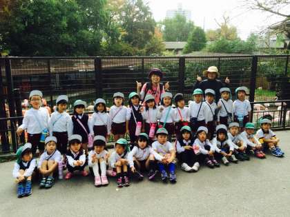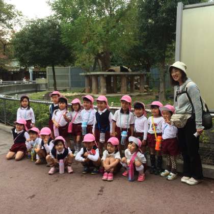 お休みパンダの前で、ハイポーズ! さくら組さん。