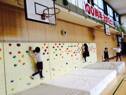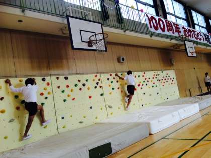 これから、休憩時間、講堂を活用して、「ボルダリングウォール」にチャレンジします!