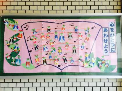思わず歌いたくなる、とってもかわいい、玄関掲示です。