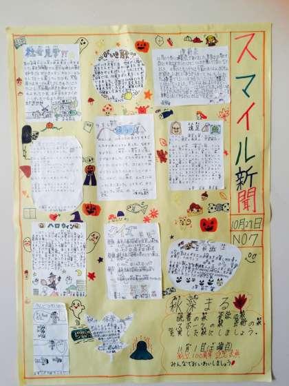 新聞委員会作成のかべ新聞「スマイル新聞」ができました。