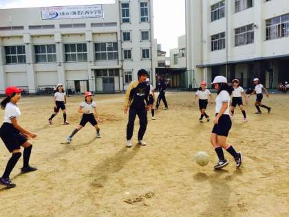 いつもはおとなしい女の子が、ボールを追いかけ、パスをまわしながら、思い切り体を動かしています。