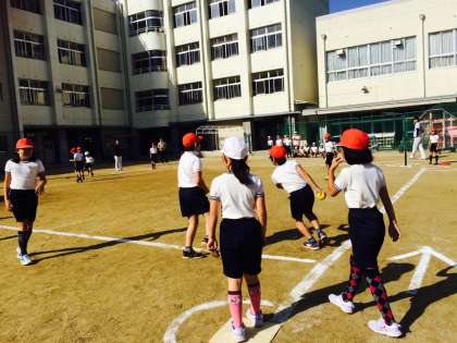 2時間目は、4年生が「ティーボールゲーム」を教えていただきました。