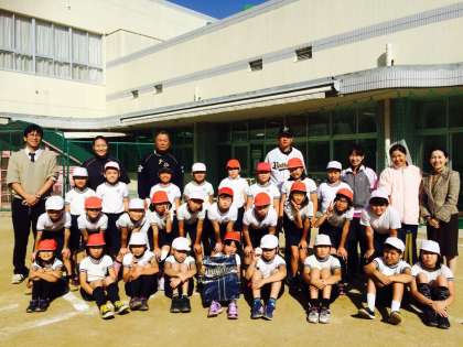 11月11日、オリックス・バファローズ少年野球教室の先生が4名、海老江西小学校に来てくださいました。