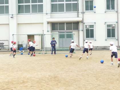 セレッソ大阪のサッカーコーチの先生が、5年生にサッカーを教えてくださいました。