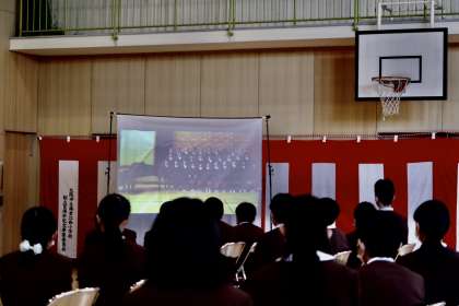 規模縮小のため、5年生からはビデオメッセージを贈りました。