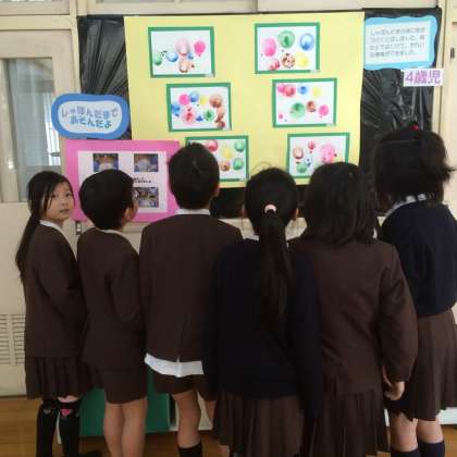 小学校の子ども達が、幼稚園の作品展を鑑賞しました。