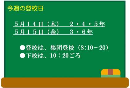 明日(5/14)より、学校休業中の登校日が始まります。校内での3密を避けるため、各学級を2分割し別々の教室で、2時間程度の活動を行います。