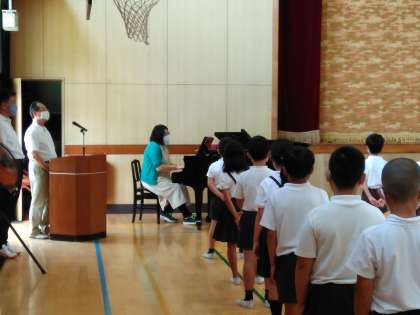ようやく長い1学期が終わりました。今日は5時間目に講堂で児童間の間隔をあけながら終業式を行いました。校長先生のお話のあと、生活指導の先生のお話がありました。わずか2週間の短い休みですが、子どもたちにとって有意義なものとなることを願っています。保護者の皆様にはこれまでの学校へのご支援やご協力、誠にありがとうございました。2学期もどうぞよろしくお願い致します。