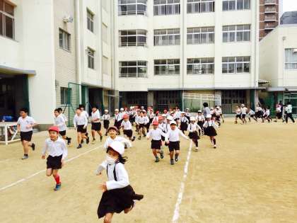※1〜3年生はトラックの内側、4〜6年生は、トラックの外側を走ります。