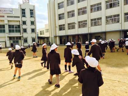 2年3年4年の子ども達が、仲良くドッジボールを楽しんでいます。
