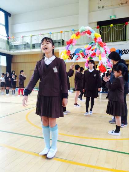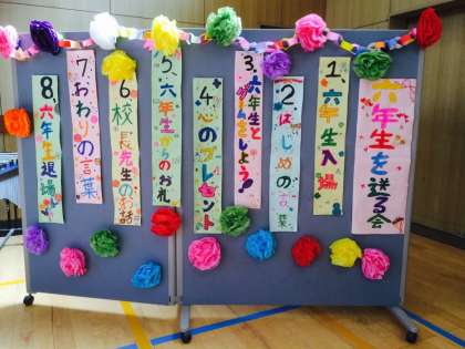 6年生の卒業を祝い、在校生がお世話になった感謝の気持ちを伝える会です。