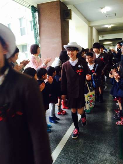 最後のお別れです。海老江西小学校の5年生、幼稚園年中のさくら組の子ども達、教職員、保護者の方々に見送られて、卒業生が巣立っていきました。