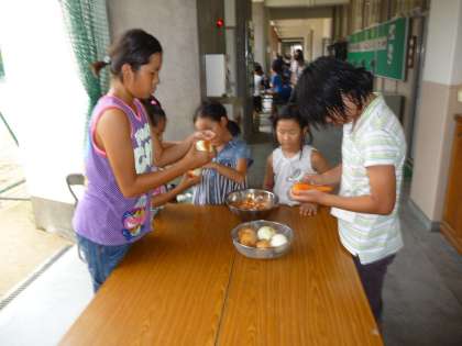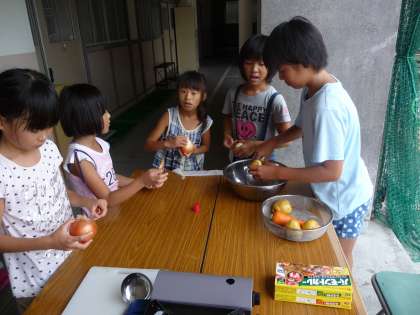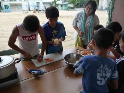 海老江西子ども会校庭キャンプが始まりました。1年から6年まで力を合わせてカレー作りに挑戦です。おいしいカレーができますように。