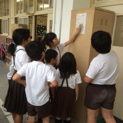 先週、たてわり班会議で決めた『掃除のめあて』と『役割分担』の表が、きれいにレイアウトされて、そうじ用具入れの側面に張ってありました。