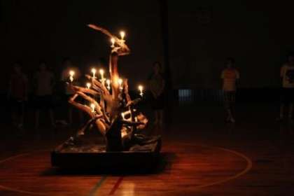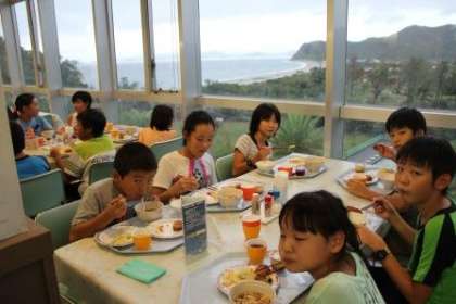 午後の館内オリエンテーリングを終え、5時45分から夕食が始まっています。全員とっても元気で、いっぱい食べているとのことです。夜の活動は、あいにくの雨のため、体育館でキャンドルを囲んでの集会活動を予定しています。