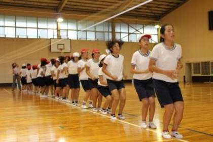 自然体験学習も2日目の朝を迎えました。全員元気で朝食を終えました。ただ、天候が不安定で午前中に予定していたカッター漕艇は中止となりました。体育館で運動レクリエーションをします。