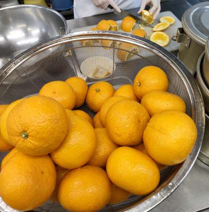 あまなつかんは皮が少し固かったのですが、こどもたちはじょうずに皮をむいて食べていました。
