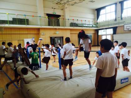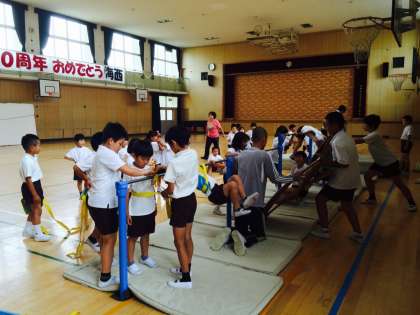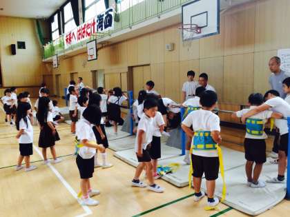先生方や運動委員会の子ども達が安全を確かめ、優しく声掛けをしたり、補助をしたり。