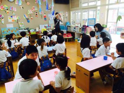 小学校の健康委員会の子ども達が、幼稚園の子ども達の歯みがきの様子を見て、気のついたことを教えてあげる活動のことです。