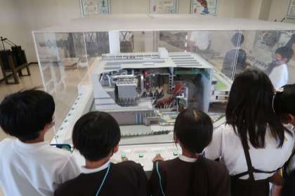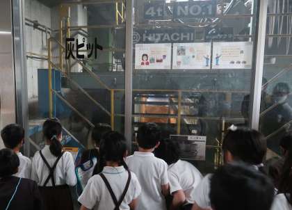 この前学校へ来てもらってごみの収集作業について学習しましたが、今日は集められたごみがどのように処理されるのかを見せてもらいました。大きな機械や設備があって驚きました。
