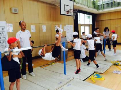 木曜日の20分休みは、3年生が講堂で鉄棒にチャレンジしました。