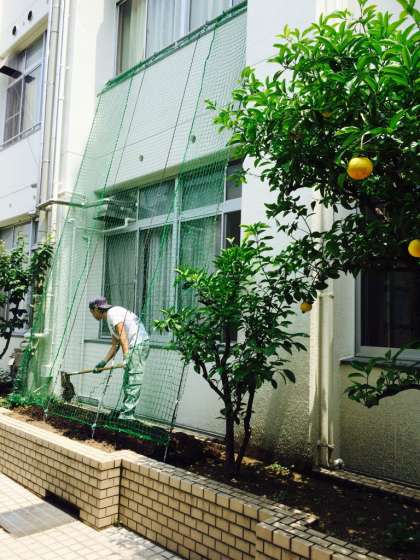 前庭の『緑のカーテン』には、ゴーヤを植えます。