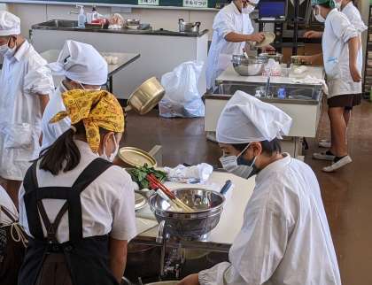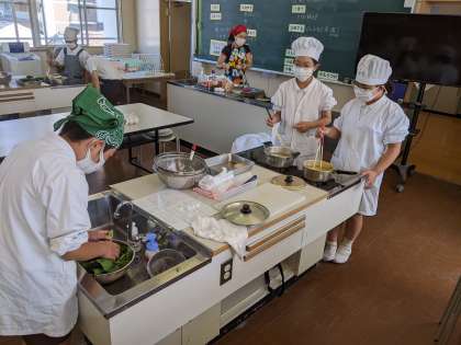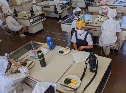 5年生はゆで卵とほうれん草のおひたしを作りました。グループで役割を分担し、行程表にそって調理を進めました。出来上がって、お皿にきれいに盛り付けて、食べました。美味しくできて、みんな満足そうでした。