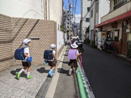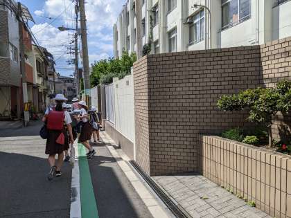 今日は5時間目の後半に、集団登校の班で集まりました。一学期も終盤になり、4月からの集団登校を振り返り、これからもルールを守っての集団登校ができるように話し合い、確認し合いました。その後、下校時は登校班で、安全な歩行について話し合ったことをかくにんして、一斉下校をしました。