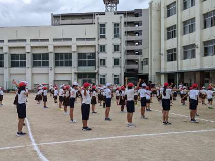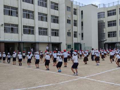 集会の時間に運動会の準備運動・整理運動の練習をしました。準備運動はラジオ体操で、伸びるところやねじるところなど確認して練習しました。整理運動はストレッチです。どこが伸びているのか意識しながら、ゆったりと筋肉を伸ばしていきました。