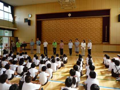 9日の全校朝会で、「下校安全見守り隊」のみなさん、「図書ボランティア」のみなさんをご紹介させていただきました。