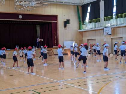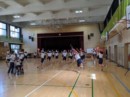 5年生・6年生も、運動会にむけて練習を重ねています。振り付けをしっかり覚えるために繰り返し踊っています。そろってパーランクーを打ち鳴らしながら踊る姿が楽しみです。