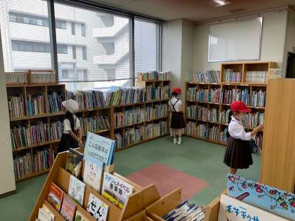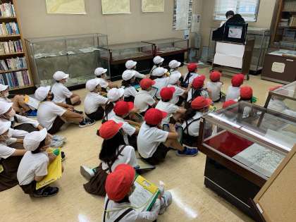 2年生は、地域の施設の見学で福島図書館へ行きました。図書館の説明を聞く中で、本が何冊あるのかクイズが出されました。子どもたちの予想をはるかに上回る数の本があることに、みんなびっくりしていました。どんな発見があったでしょう。帰ってから、新聞にまとめる活動をしていきます。