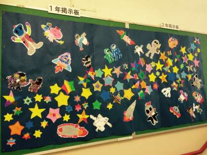 1・2年掲示板は、夏の夜空に輝く星と宇宙船。