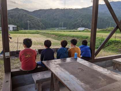 お風呂上がりの一杯は、美味しいです。外の空気が爽やかで、景色もきれいでほんのりした気分になってます。