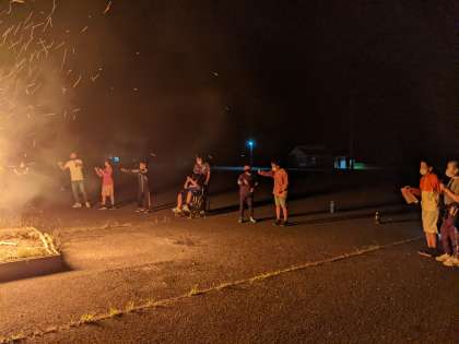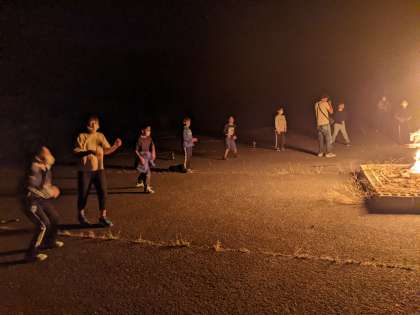 キャンプファイヤー、ゲームでみんなで盛り上げて楽しんでいます。
