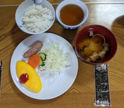 朝ごはんです。しっかり食べて、エネルギーを補給して、今日一日、がんばります。