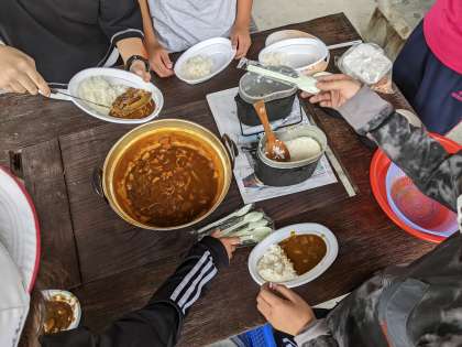 美味しいカレーができあがりました。同じ材料でしたが、班ごとに、こさが違ったり具の大きさが違って食感が違ったりして、どの班のカレーも美味しくできていました。