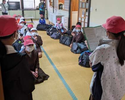 閉舎式を行いました。3日間お世話になった感謝の気持ちを伝え、別れを惜しみました。