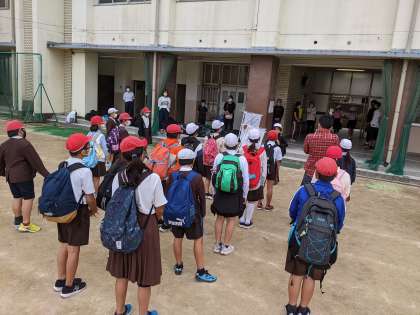 学校に帰ってきました。帰校式を行い、3日目様々な体験をして帰ってきた5年生。これからの学校生活に生かしてくれることと期待しています。