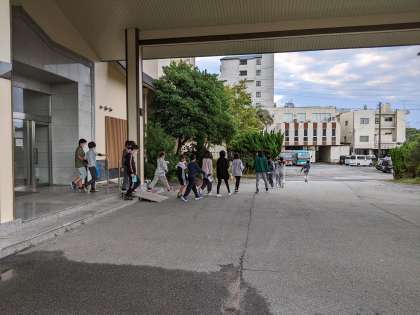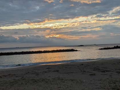 今日は天気が良さそうです。みんな元気に起床しました。海岸へ朝の集いにでかけます。