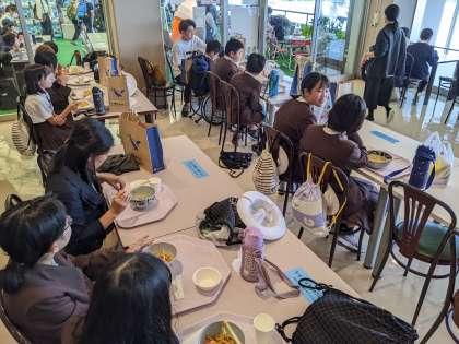 お昼ごはんは、カレー、ラーメン、チャーハン、伊勢うどんから好きなものを選んで食べました。