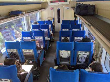 帰りは伊勢志摩ライナー(写真は黄色の電車ですが子どもたちが乗っているのは赤色です)です。シートも座りやすくて、とても快適です。