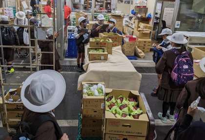 まずは果物を扱う市場へ案内してもらいました。全国からたくさんの果物が並んでいました。